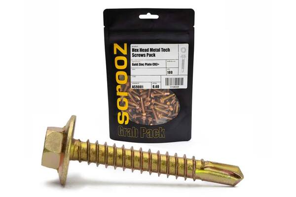 Hex Tek Screws Gold Zinc - Self-Drilling Screws for Steel | Buy Online in Australia