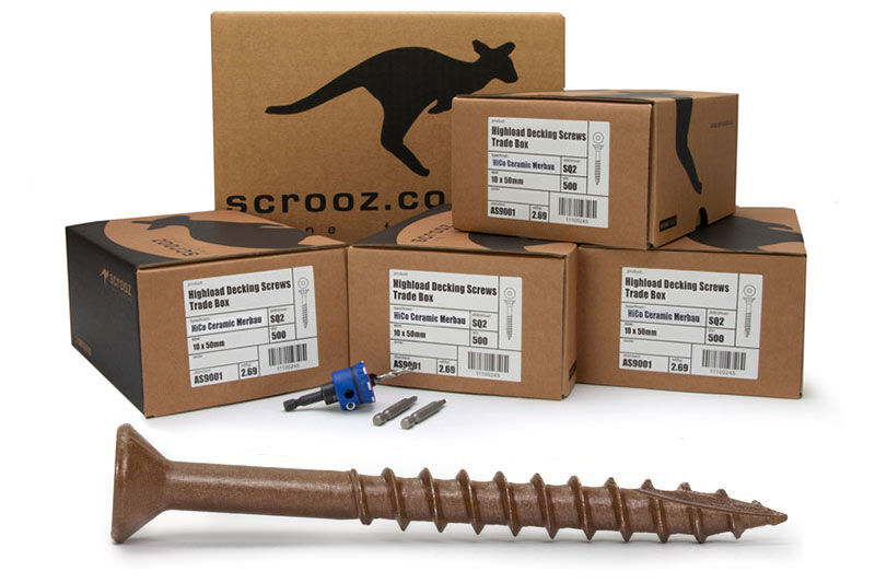 Scrooz RazrDeck HighLoad decking screws are manufactured specifically for customers looking for a tough, cost effective solution with great anti-corrosion properties, they are made from high grade carbon steel which is case hardened and then coated in our rock hard multi-layer 'baked on' ScrewArmour coating in an appealing bronze finish to match your decking timber, lasting well over 6 times longer than any galvanised finish and with twice the strength of stainless steel screws they are a 'fit and forget' fastener that won't snap or suffer driver tear-out, and you can use them anywhere in any timber including ACQ and CCA pressure treated wood.