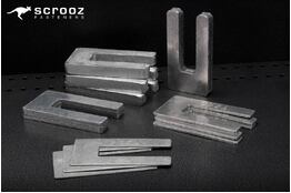 With a hardness rating of Brinell 75 HB and Vickers 80 HV, Scrooz aluminium shims ensure long-term structural integrity even under extreme loads. Each shim features a horseshoe design for easy placement around fixings and fasteners, streamlining the levelling process and preventing distortion during tightening.