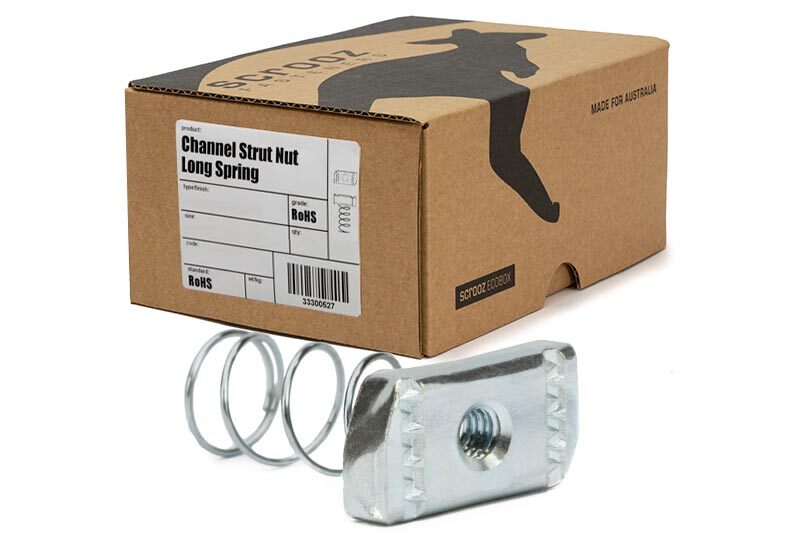 Scrooz Channel Strut Nuts are industrial-grade fasteners designed for rapid, secure, and adjustable connections in strut framing systems such as Unistrut®. Commonly used in electrical, mechanical, HVAC, plumbing, and construction installations, they provide a fast and effective method of mounting pipe clamps, cable trays, electrical boxes, and structural supports to metal channel profiles.