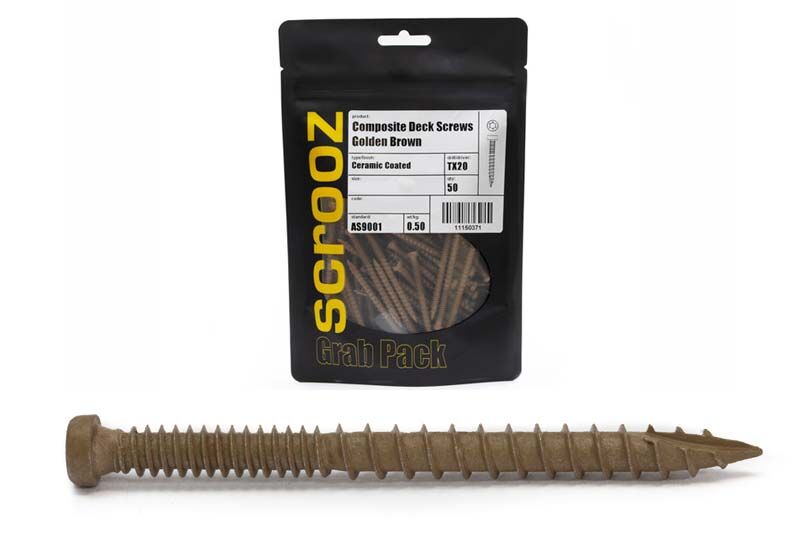 Composite Deck Screws 9g x 65 Brown Pack 50