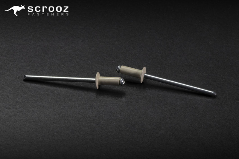 Colorbond rivets use a 5052 aluminium open body for light weight and corrosion resistance, with a zinc plated steel break stem mandrel for strong, and can be set by hand or power riveter. Popular with roofers and builders, they suit new installs and maintenance on residential and commercial projects.