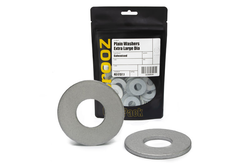 Scrooz Extra Large Washers are industrial-grade, oversized flat washers specifically designed to deliver superior load distribution and surface protection in heavy-duty applications. Manufactured from high-strength mild steel and finished in hot-dip galvanised coating to AS/NZS 4680 standards, they offer outstanding corrosion resistance for long-term use in outdoor and exposed environments.