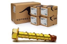 Scrooz Concrete Screw Bolts are high strength concrete and masonry screw anchors with helical threads allowing the bolt to cut it's own thread in concrete and masonry when tightened, no plugs are required and these anchors don't expand so they are ideal for use in masonry and concrete where cracking may be a problem.