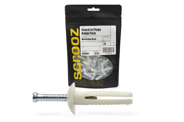 Scrooz Fasteners' Mushroom Head Knock In Plugs are a high-performance, fast-installation anchoring solution designed for quick, secure fixing into masonry, concrete, brick, blockwork, and hollow walls. Featuring a low-profile mushroom head for a clean, flush finish, these knock in plugs are ideal for visible applications where appearance and holding power both matter.
