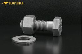 Scrooz Fasteners supplies a premium range of high tensile structural bolts and nuts assembled, specifically engineered for critical load-bearing applications in steel construction. Each assembly is fully compliant with Australian Standard K0 AS1252:2016 and includes a galvanised 8.8 grade hex head bolt, a deep structural nut, and a through-hardened washer - all pre-assembled for fast, reliable installation.