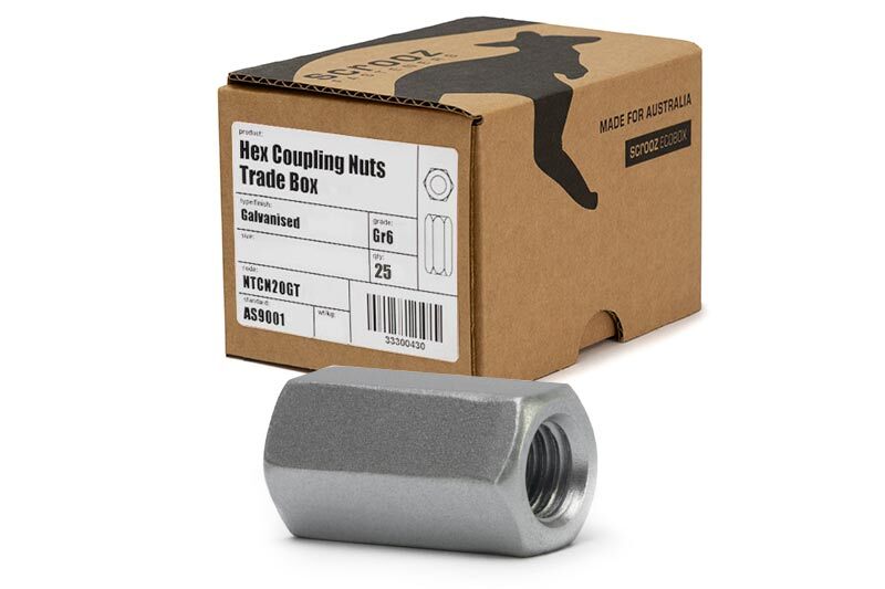 We offer coupling nuts in bright zinc plated, hot-dip galvanised, and marine grade 316 stainless steel options to suit indoor, outdoor, and marine-grade applications.