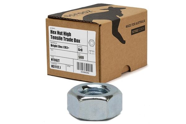 Hex Nuts Zinc Plated - High Tensile Steel, Metric Thread, AS1112 Compliant
