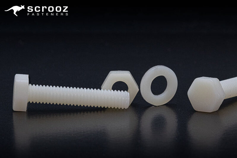 Scrooz Fasteners supplies high-performance Nylon Hex Bolts, purpose-built for use in corrosive, non-conductive, and weight-sensitive applications. Manufactured to DIN 933 specifications using PA6 (polyamide 6) engineering-grade nylon, these hex head bolts offer outstanding strength-to-weight ratio, excellent chemical resistance, and full electrical insulation.