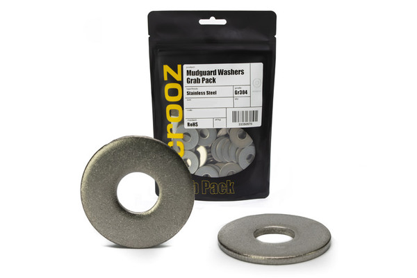 Scrooz Mudguard Washers, also referred to as penny washers or repair washers, are extra-large diameter flat washers engineered to provide maximum surface coverage and load-spreading performance. Featuring a significantly wider outside diameter than standard washers, they're ideal for securing bolts through soft, thin, or damaged materials-helping prevent pull-through and distribute pressure evenly.