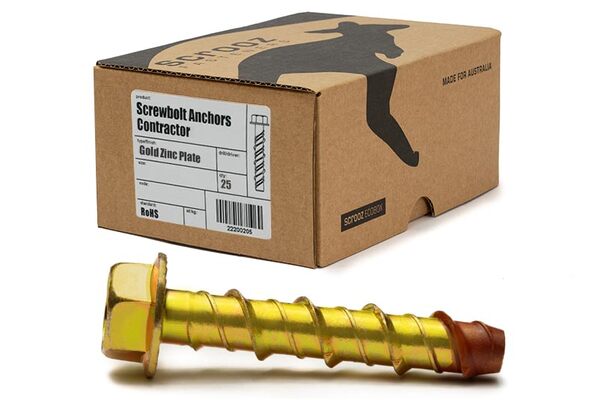 Screw Bolt Anchors Contractor Range - Heavy Duty Gold Zinc Concrete Screw Anchors for Australian Builders