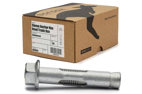 Scrooz Galvanised Sleeve Anchors are high-strength expansion anchors for masonry, brick, and concrete, engineered for fast, secure fixing in both solid and hollow base materials. Mechanical galvanised for enhanced corrosion protection in Australian outdoor environments, they're perfect for fencing, framing, machinery, steel fixtures, and infrastructure installations.