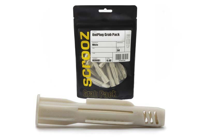 Scrooz UniPlugs are heavy-duty universal wall plugs engineered for high-strength anchoring in almost any material. Made in Denmark using advanced plug technology and premium PA6 polyamide nylon, these plugs outperform standard plastic plugs in both holding power and reliability.